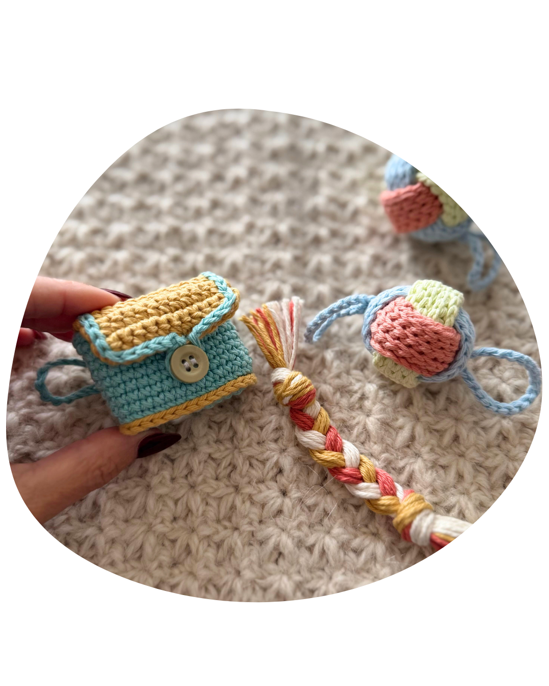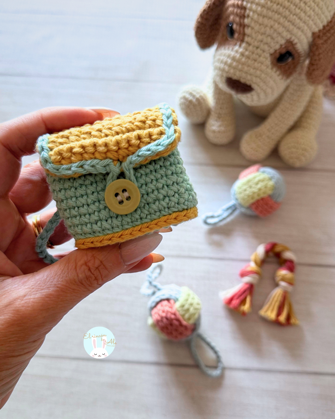 ¿Por qué sumarla a tu compra? Porque si vas a tejer a Rocco, verlo con su mochila puesta y jugando con su pelota es otra cosa. Es el toque final para que tu tejido cuente una historia completa.