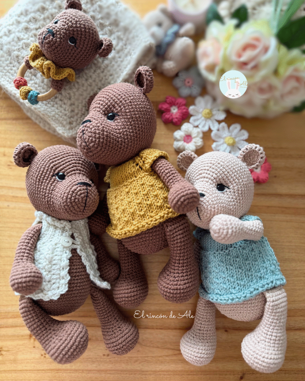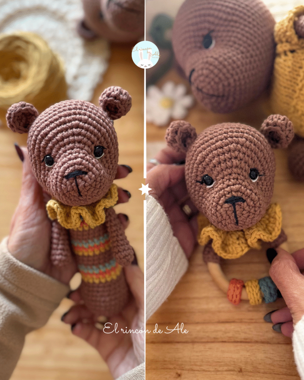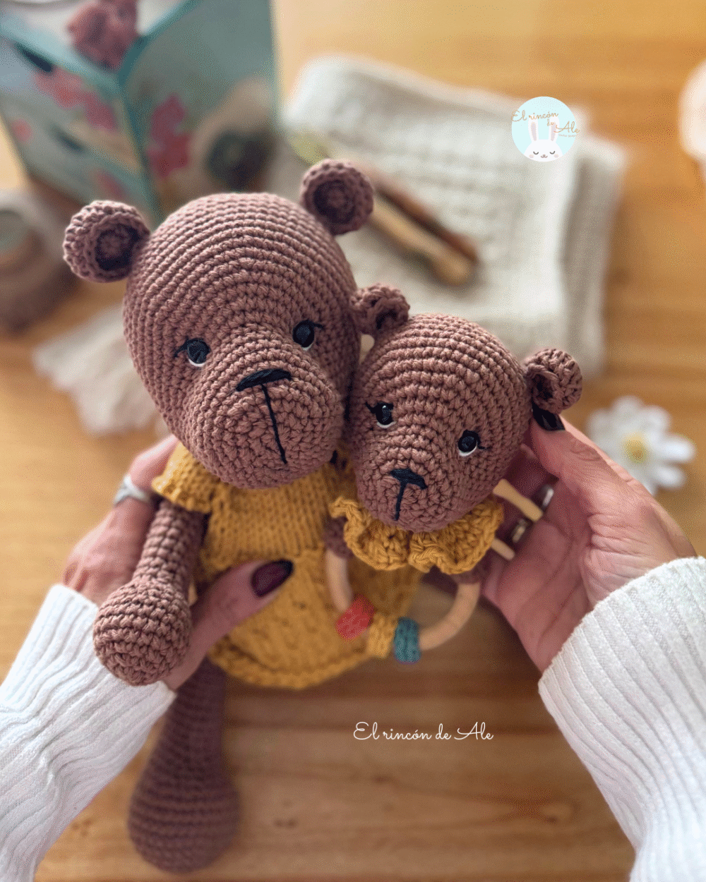 *La compra de esta guía no incluye el oso, los sonajeros terminados ni los materiales necesarios, solo las instrucciones para tejerlos.