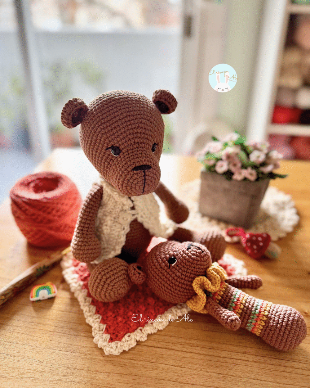 - Mencionarme como autora del diseño en tus posteos, arrobarme o etiquetarme. Compartir tu proyecto en Redes Sociales, usando los hashtags: #elrincondeale #osoBenja #patroneselrincondeale